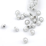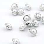 Knap 12 mm - Perle med sølvroset - Hvid/Sølv