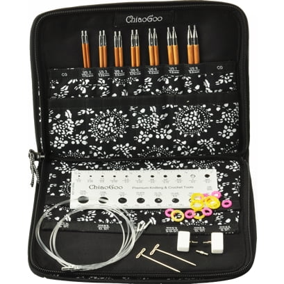 Dette udskiftelige rundpindesæt fra ChiaoGoo indeholder pinde i størrelserne 2.75 – 5 mm og er velegnet til strik i tyndt og mellemtykt garn.