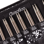 Dette udskiftelige rundpindesæt fra ChiaoGoo indeholder pinde i størrelserne 2.75 – 10 mm.