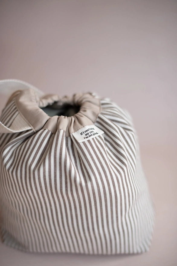 Indvendigt finder du flere velplacerede lommer, som holder styr på garn, pinde og små redskaber. Foret er vævet ekstra tæt, så spidserne på dine strikkepinde ikke går igennem stoffet. Den praktiske håndledsrem gør den nem at tage med – også på farten.